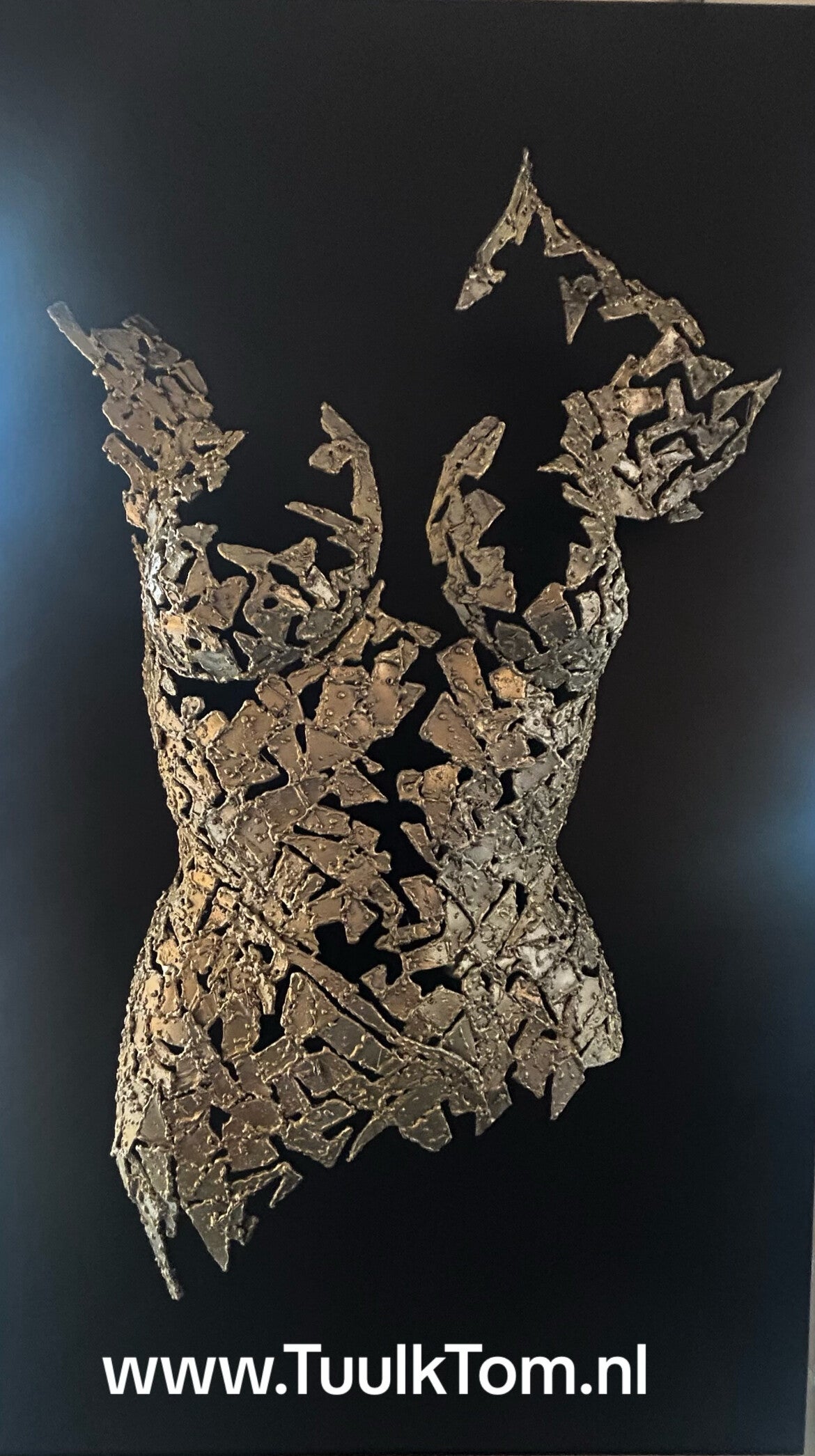 Het klinkt alsof je een kunstzinnige of design-geïnspireerde interpretatie zoekt van Theia, de Titanide uit de Griekse mythologie, in de vorm van een sculptuur of afbeelding. Denk je aan een metalen sculptuur met elegante, sensuele vormen, gemaakt van staal of een ander plaatmateriaal? Moet het een abstracte, stilistische benadering zijn, of een meer herkenbare menselijke vorm met een erotische uitstraling? TuulkTom heeft zijn eigen vorm hier aan weten te geven
